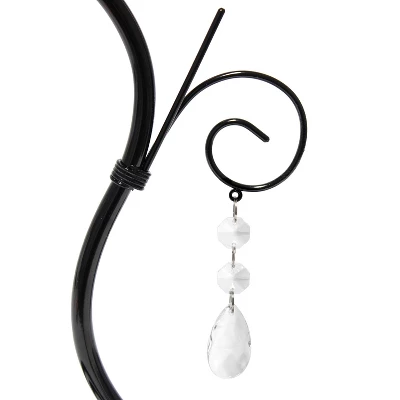 A unique styled lamp with a winding black metal base and ivy-like details for a bit of a feminine influence to inspire a lovely illumination of your space. Crystals shimmer beneath the brown tapered drum fabric shade for an overall warm, inviting feel to add into your decor and space of choice.