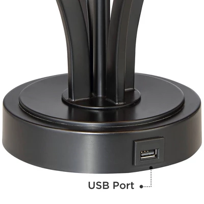 This set of two iron table lamps add understated style to your living space. From the designers at 360 Lighting, this pair of lamps is accented with a USB port in the base of each, offering an easy spot to charge a smart phone or tablet. Each lamp boasts a dark finish with a trimmed drum shade. Each lamp has a 8″ round riser.