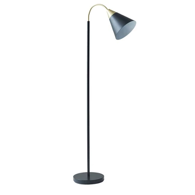 The INK+IVY Beacon Arched Metal Floor Lamp with Chimney Shade provides a refined and sophisticated option to illuminate your living room. This floor lamp features a slender arched neck with a conical shade, in a matte black and gold finish, for a chic mid-century look. A round base and black cord complete this metal floor lamp to turn your home into the perfect cozy and comfortable space. Use one Type A light bulb (not included).