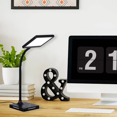 - Scientifically designed circadian desk lamp simulates sunlight; modern design and matte black finish