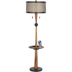 FC Design 71.5″ Tall Drum Shade Arched Floor Lamp With Unique Black Wood Pole And Metal Base