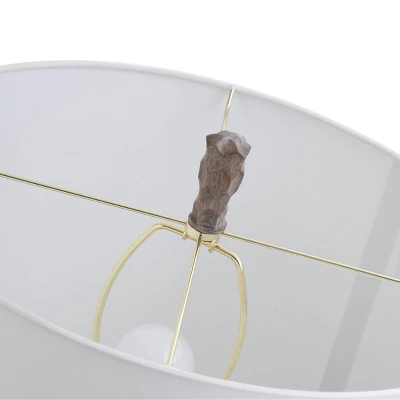 Superb craftsmanship and coloring give this transitional table lamp an appealing mix of modern and rustic styles. The polyresin frame has a gourd shape, bulging in the center of each segmented section. A wooden brown finish provides a little naturalism, while a golden accent line matches the elegant coloring of the neck. A white linen shade emphasizes the fixtureโs classy design while drawing a subtle contrast to the dark brown tone.ย Due to lighting and monitor differences, actual colors and finishes may vary slightly from what appears online