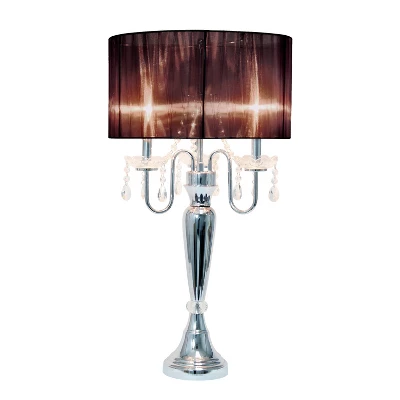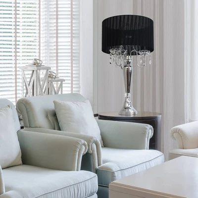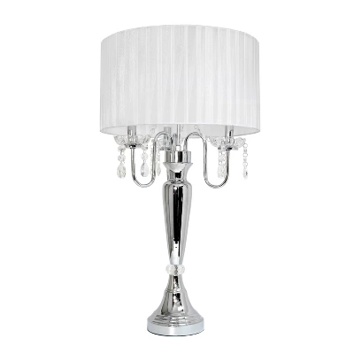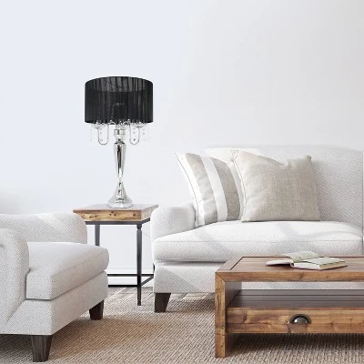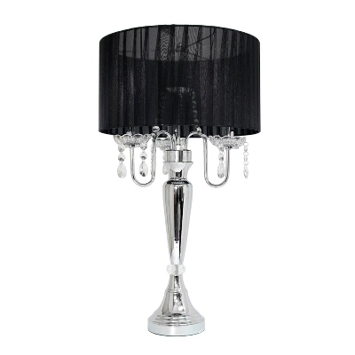 Romantic Sheer Shade Table Lamp With Hanging Crystals – Elegant Designs